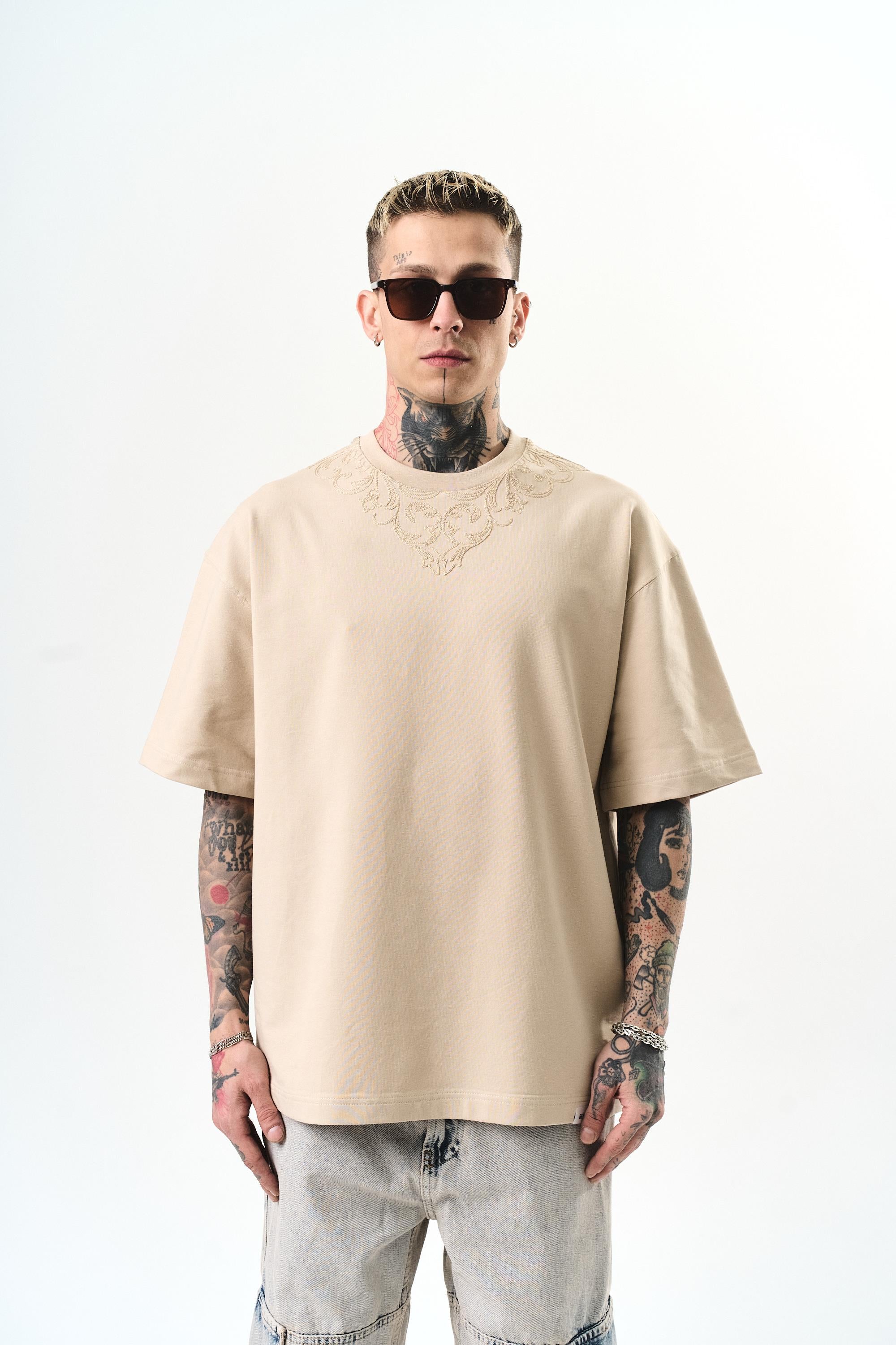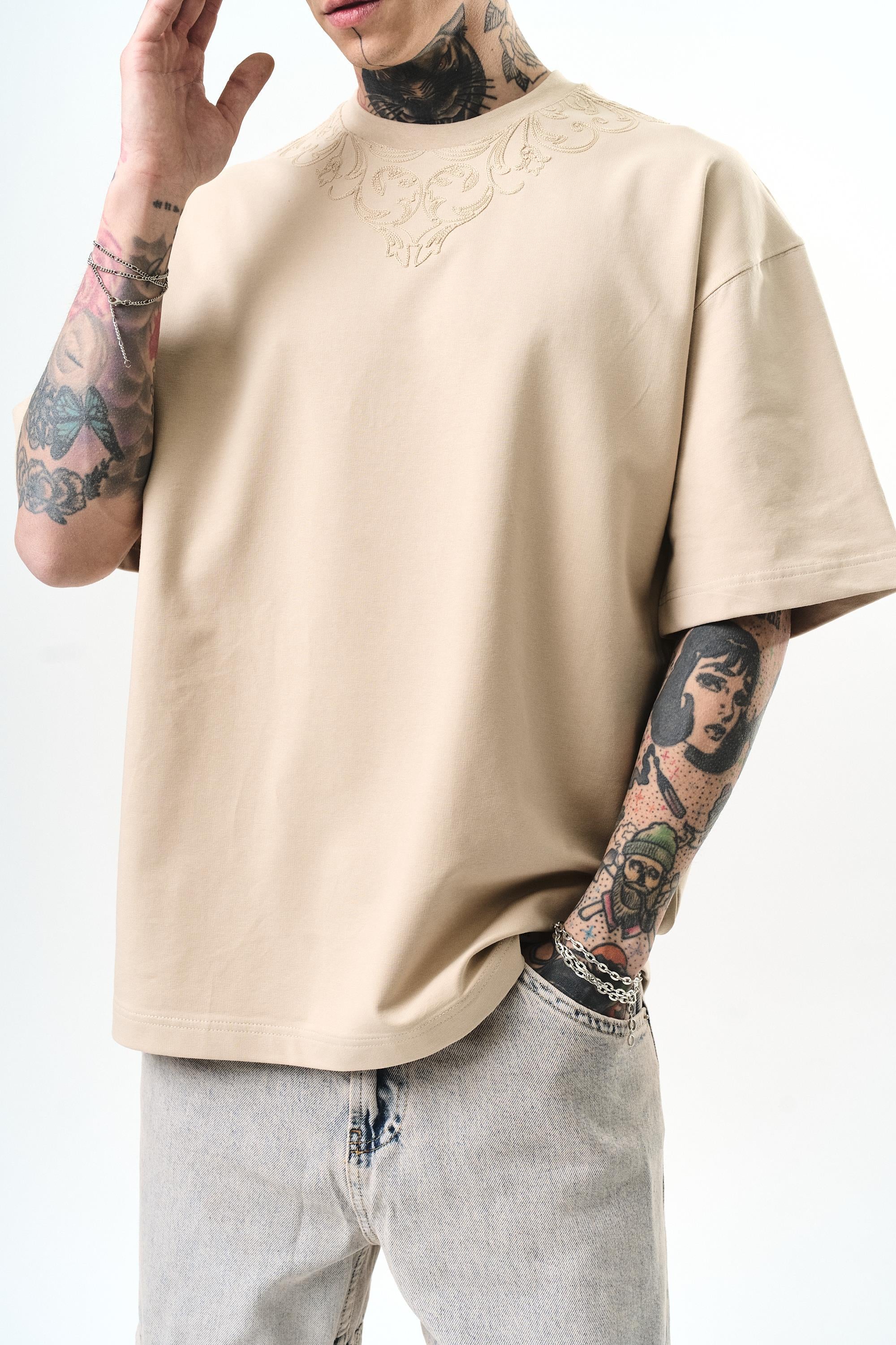 Goodly Embroidered Oversize T-Shirt Beige