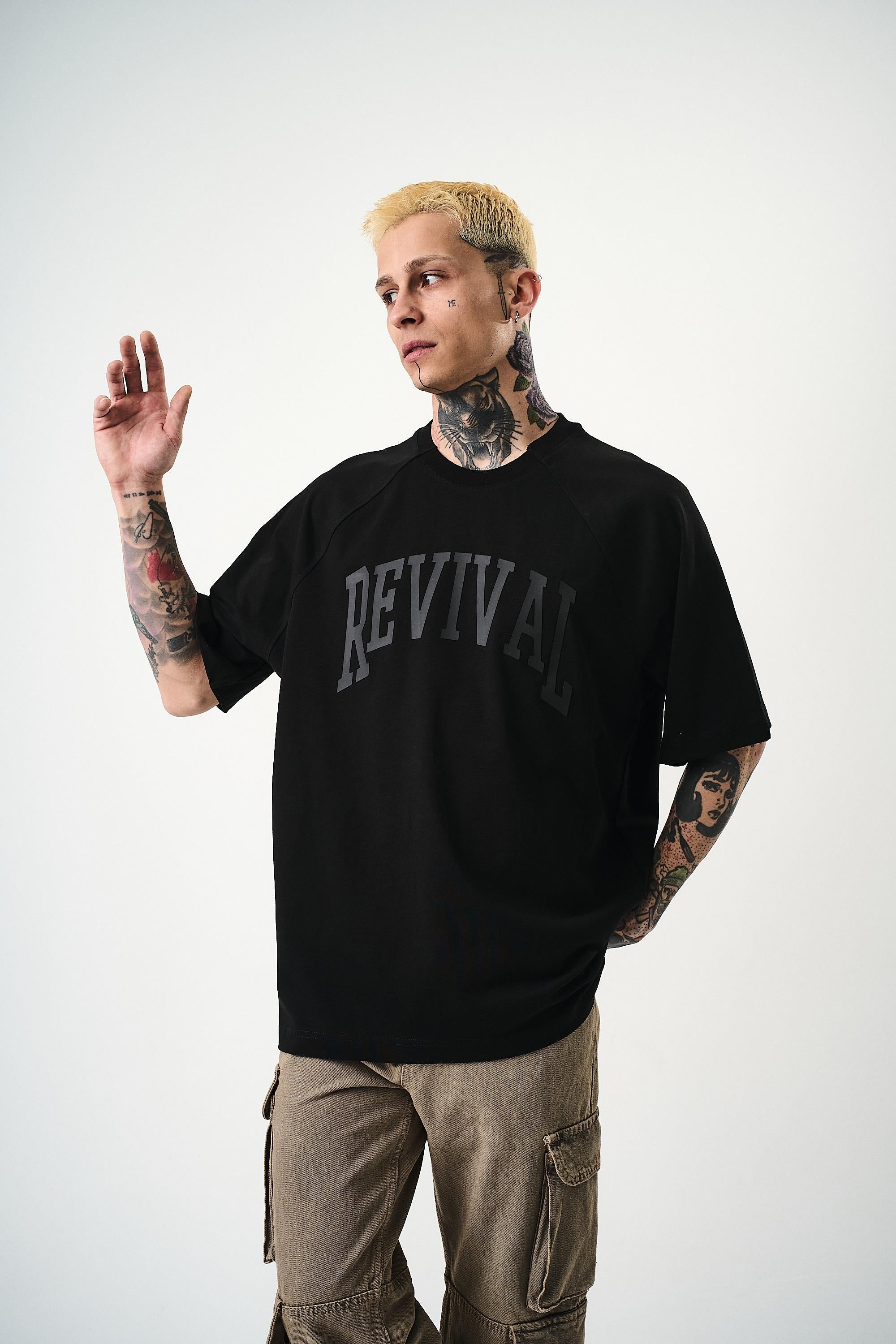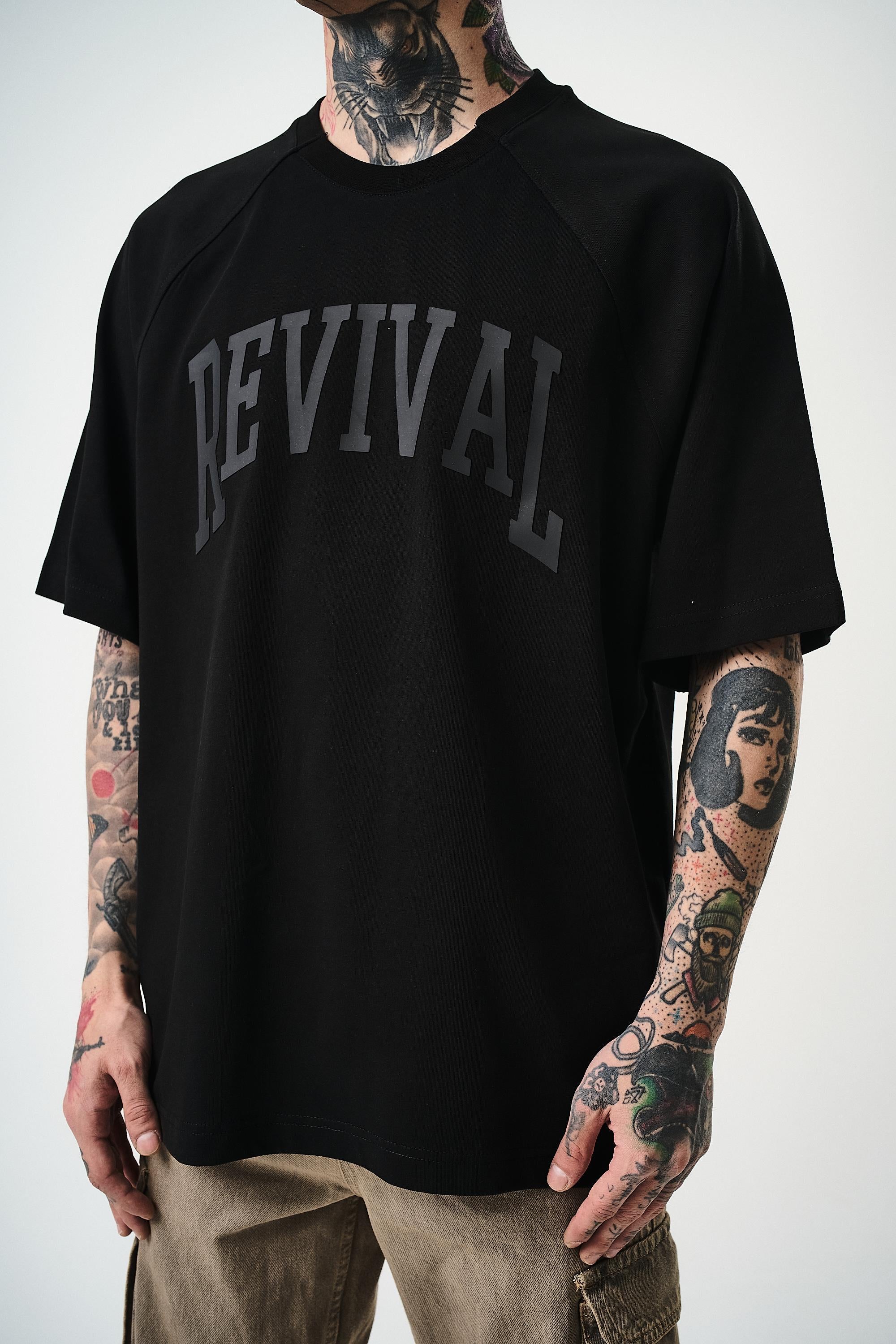 Revival Printed Oversize T-Shirt Black